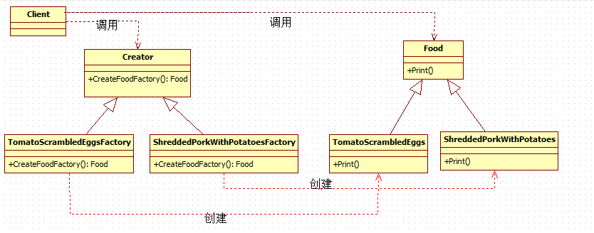- 由其具体子类创建对象。问:如何去实现呢?答:创建派生于工厂抽象类,即由具体工厂去创建具体产品,既然要创建产品,自然需要产品抽象类和具体产品类了。