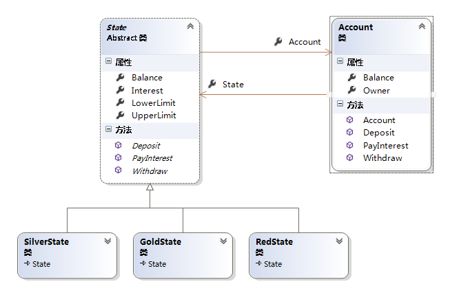 状态模式——允许一个对象在其内部状态改变时自动改变其行为,对象看起来就像是改变了它的类。具体的结构图如下所示: