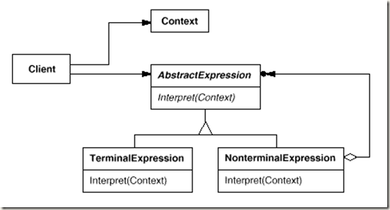 解释器模式是给定一种语言,定义它文法的一种表示,并定义一种解释器,这个解释器使用该表示来解释器语言中的句子。具体的结构图如下所示: