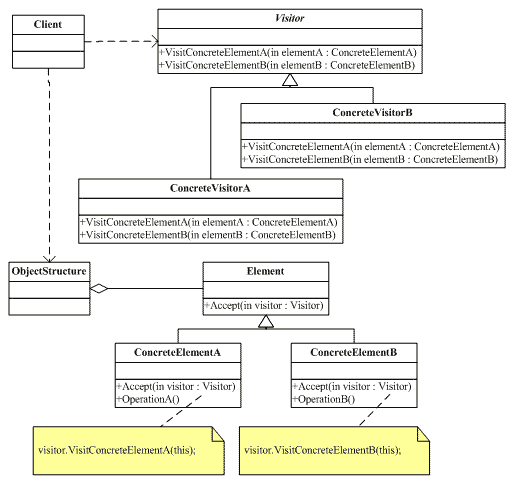 - 访问者模式:注重封装对象操作变化,支持在运行时为类结构添加新的操作,在类层次结构中,在不改变各类的前提下定义作用于这些类实例的新的操作。