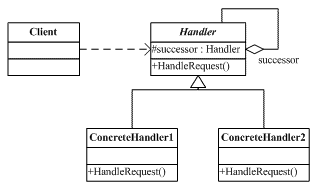 责任链模式——某个请求需要多个对象进行处理,从而避免请求的发送者和接收之间的耦合关系。将这些对象连成一条链子,并沿着这条链子传递该请求,直到有对象处理它为止。具体结构图如下所示: