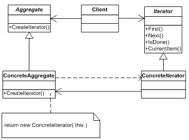 迭代器模式提供了一种方法来顺序访问一个集合对象中各个元素,而又无需暴露该对象的内部表示,这样既可以做到不暴露集合的内部结构,又可以让外部代码透明地访问集合内部元素。具体的结构图如下所示。