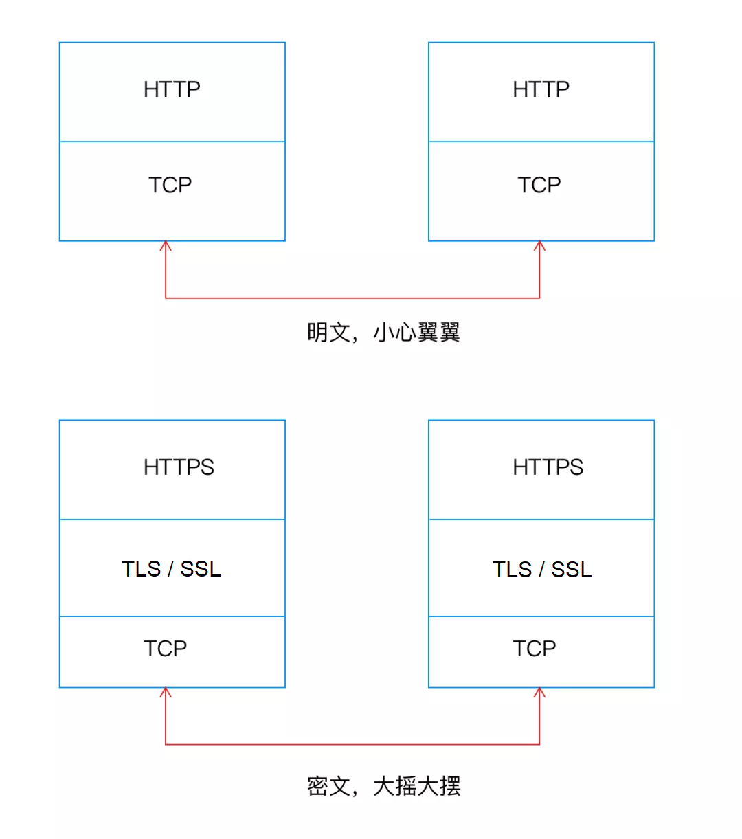 HTTP 属于应用层协议,HTTPS 并不是一个新的协议,它只是比 HTTP 协议多了一层(TLS/SSL)来保证数据传输安全。TLS/SSL也属于协议,它的主要作用是保证数据传输安全。大多数使用的是 OpenSSL 来实现,比如 Node 中的 TLS 就是基于 OpenSSL 实现的。