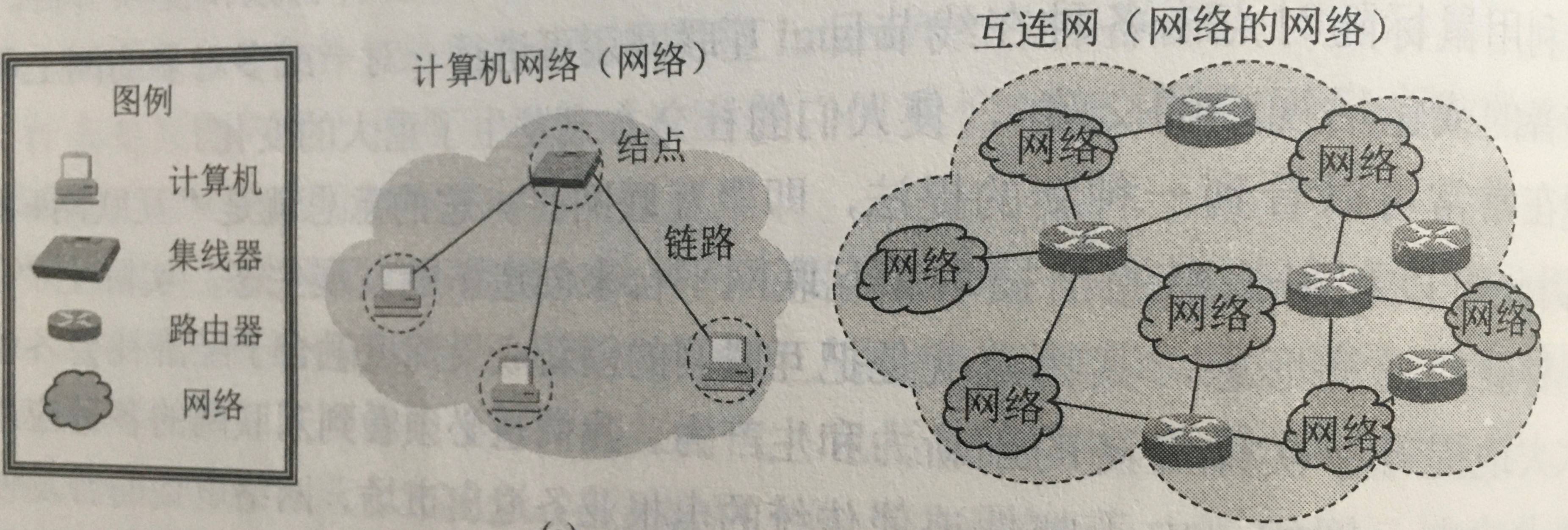 - 互连网:网络之间可以通过路由器互连起来,这就构成一个覆盖范围更大的计算机网络。