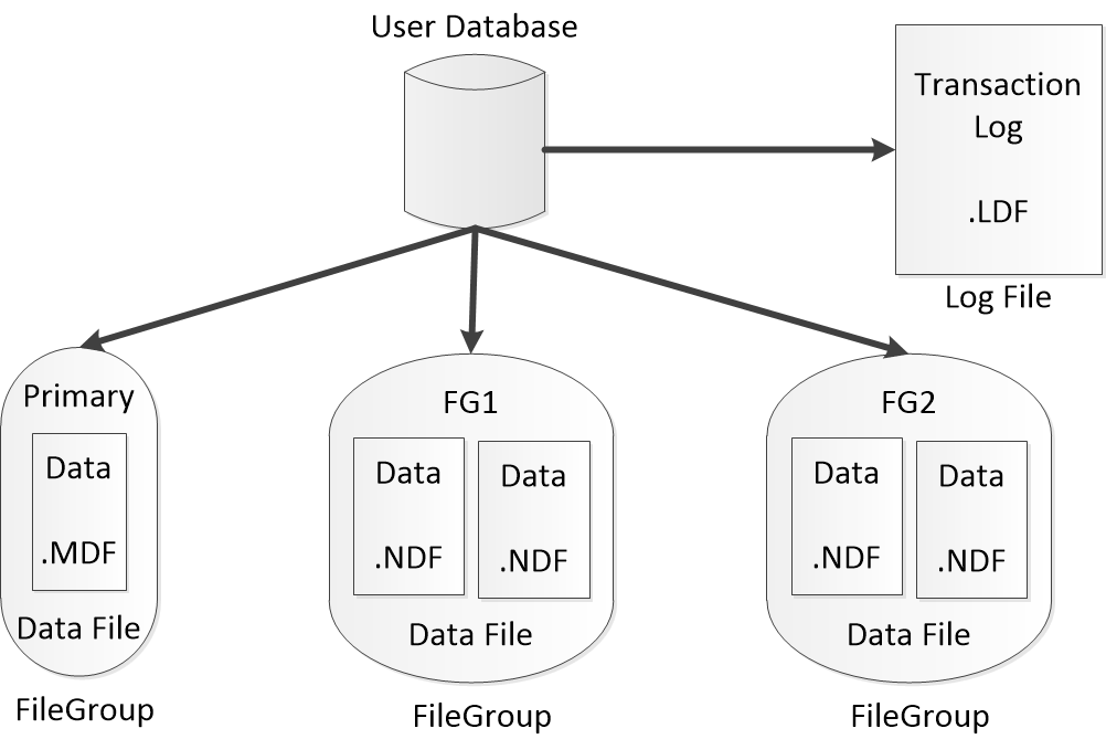 (1)数据文件用于保存数据库对象数据。数据库必须至少有一个主文件组(Primary),而用户定义的文件组则是可选的。Primary 文件组包括 主数据文件(.mdf),以及数据库的系统目录(catalog)。可以选择性地为 Primary 增加多个辅助数据文件(.ndf)。用户定义的文件组只能包含辅助数据文件。