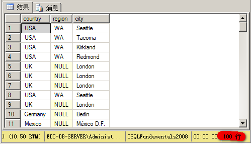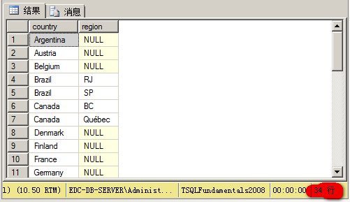 另外,T-SQL 对于 NULL 值的处理是先输出 NULL 值再输出非 NULL 值的顺序,如果想要先输出非 NULL 值,则需要改变一下排序条件,例如下面的请求: