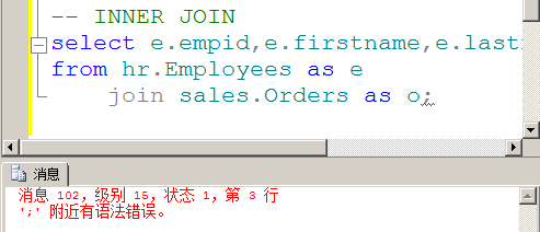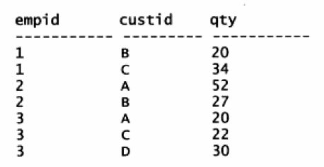 | 1 | select e.empid,e.firstname,e.lastname,o.orderid |