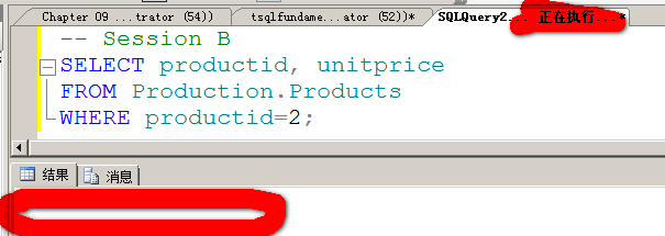 Step2. 在 Connection B 中更新 OrderDetails 表中产品 2 的订单明细,并保持事务一直打开: