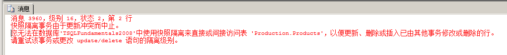 然后,关闭所有连接,然后在一个新的连接下运行以下代码,以禁用指定数据库的基于快照的隔离级别:(执行ALTER DATABASE TSQLFundamentals2008 SET READ_COMMITTED_SNAPSHOT OFF;这一句时可能需要花费一点时间,请耐心等候)