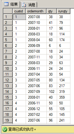 下面来看看一个实例,它使用游标来计算 CustOrders 视图中每个客户每个月的连续总订货量(连续聚合案例):
