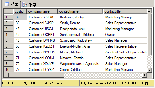 同样,要查询没有下过订单的西班牙客户只需要加上NOT即可: