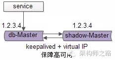 (6)【服务层】到【数据库“写”】的高可用,是通过写库的冗余实现的,常见实践是 keepalived + virtual IP 自动故障转移;