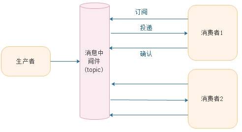 消息生产者 将消息发送给 消息队列,消息队列 又将消息推给 消息消费者。