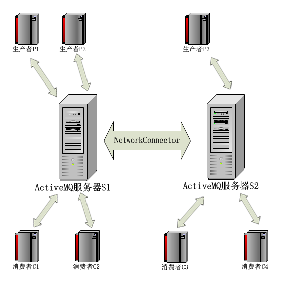 - 代理集群:多个 ActiveMQ 代理 可以组成一个 集群 来提供服务;