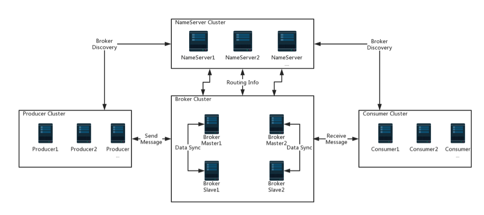 - Producer 向一些队列轮流发送消息,队列集合 称为 Topic。Consumer 如果做 广播消费,则一个 Consumer 实例消费这个 Topic 对应的 所有队列;如果做 集群消费,则 多个 Consumer 实例 平均消费 这个 Topic 对应的队列集合;