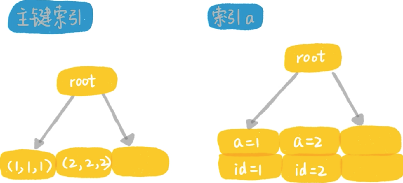 该表有三个字段,其中用 id 是主键索引,a 是普通索引。