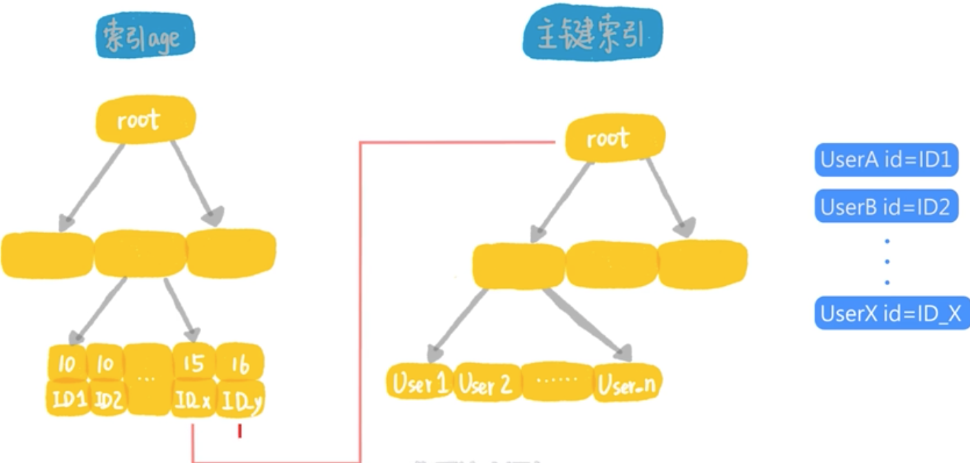 - 从索引上用树搜索,取到第 1 个 age 等于 10 的记录,得到它的主键 id 的值,根据 id 的值去主键索引取整行的信息,作为结果集的一部分返回;